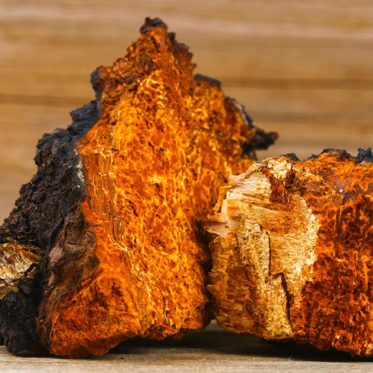 Chaga contains beta-glucans that support the immune system making it more effective against infections. It fights oxidative stress, supports detoxification, supports energy production, and acts as a prebiotic and anti-inflammatory for the gut.